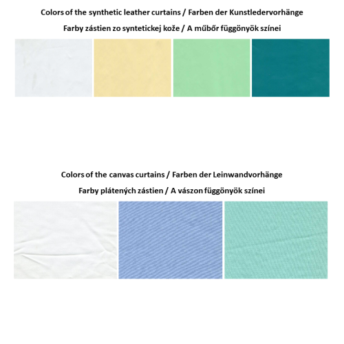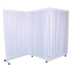Die Konstruktion des Sichtschutzes besteht aus geschlossenen Profilen. Der Wagen hat drehbare Gummiräder mit einem Durchmesser von 50 mm. Gegen Aufpreis können Sie auch in anderen Farben als Weiß bestellen.