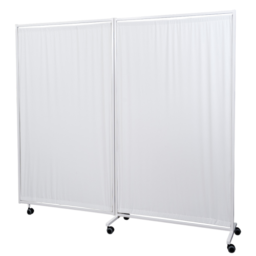 Die Konstruktion des Sichtschutzes besteht aus geschlossenen Profilen. Der Wagen hat drehbare Gummiräder mit einem Durchmesser von 50 mm. Gegen Aufpreis können Sie auch in anderen Farben als Weiß bestellen.