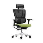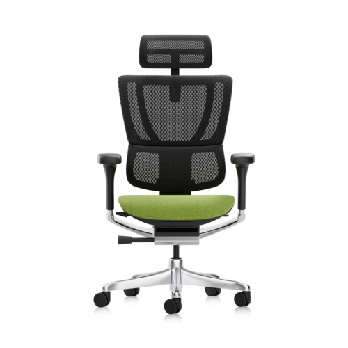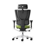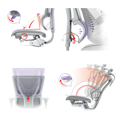 Rückenlehne und Kopfstütze Atmungsaktives, selbsttragendes schwarzes Netzgewebe sorgt für ganztägigen Komfort. Die Rückenlehne ist in 4 Positionen höhenverstellbar und mit einer dynamischen 3D-Lordosenstütze ausgestattet, die eine gesunde Körperhaltung aktiv unterstützt. Die voll verstellbare 3D-Netz-Kopfstütze bietet perfekten Halt für die Halswirbelsäule.