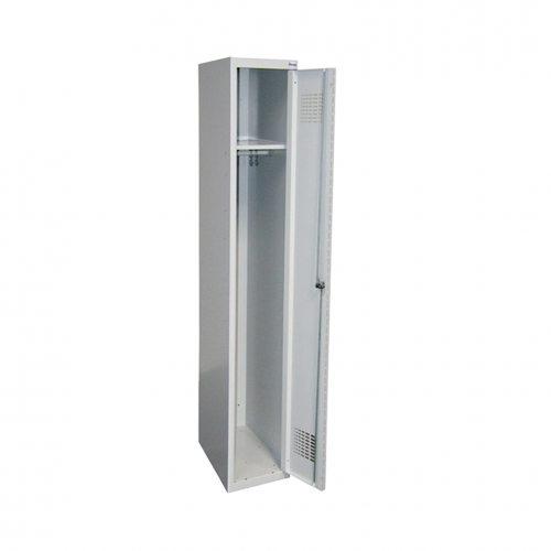 Premium Metall- Umkleideschrank. Der Metallschrank aus Stahlblech kann mit 2 Schlüsseln im Set verschlossen werden. Das Innenzubehör: ein Regal im oberen Teil, darunter eine Kleiderstange - mit 2 Haken, selbstklebender Spiegel, Typenschildhalter und Kleiderbügel.