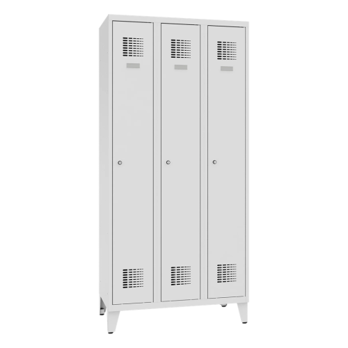 Umkleideschrank aus Metall mit Beinen. Detaillierte Beschreibung